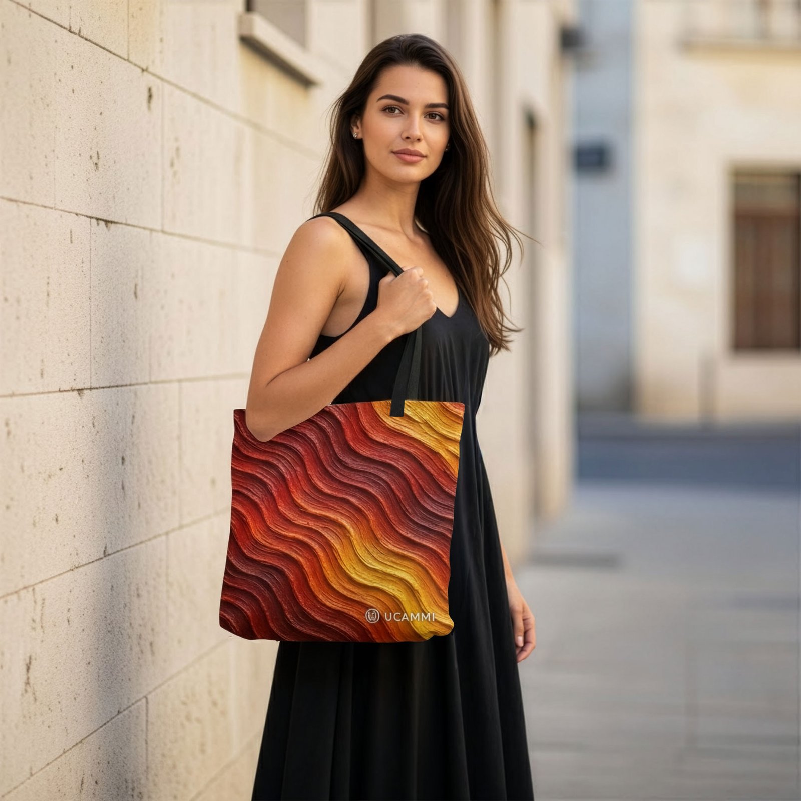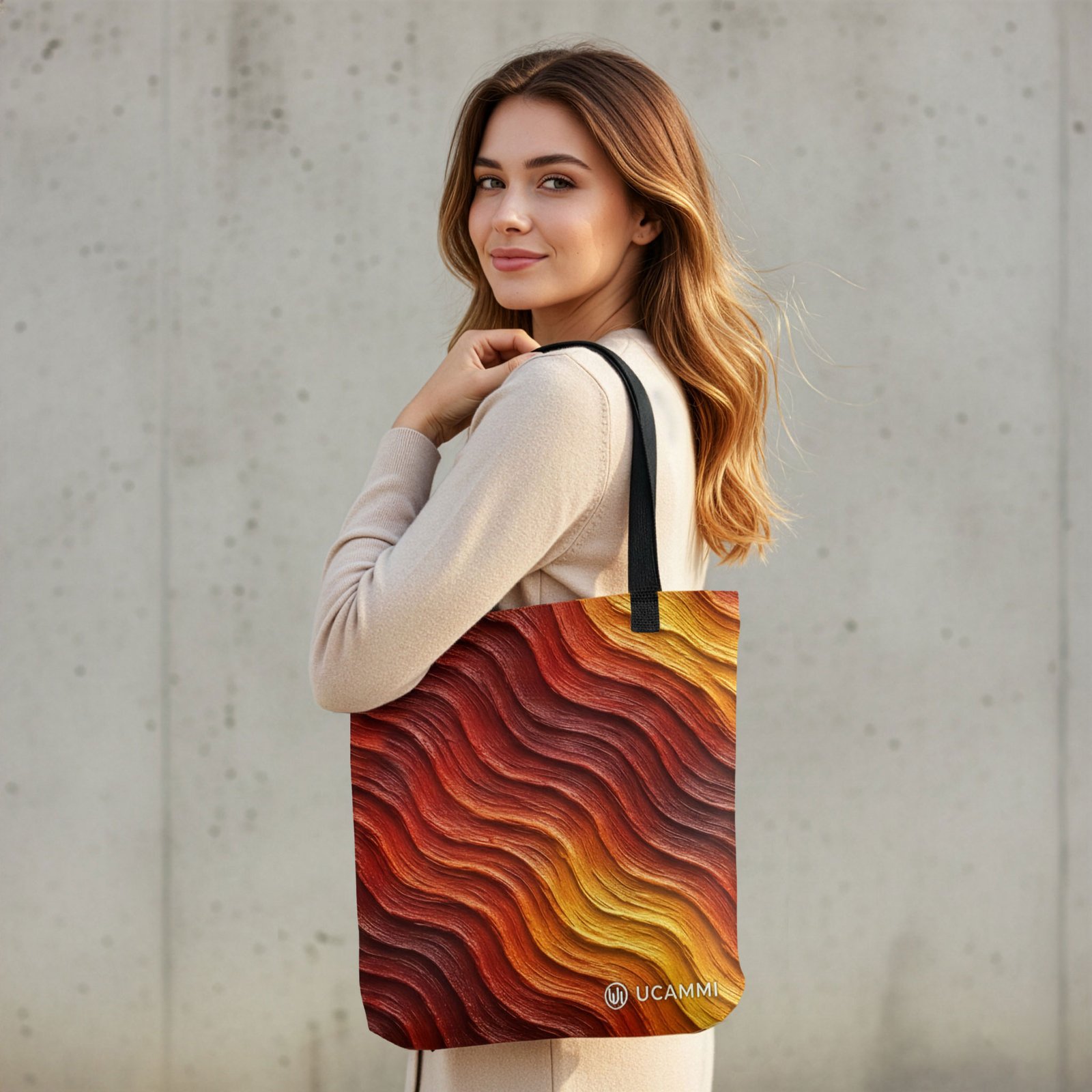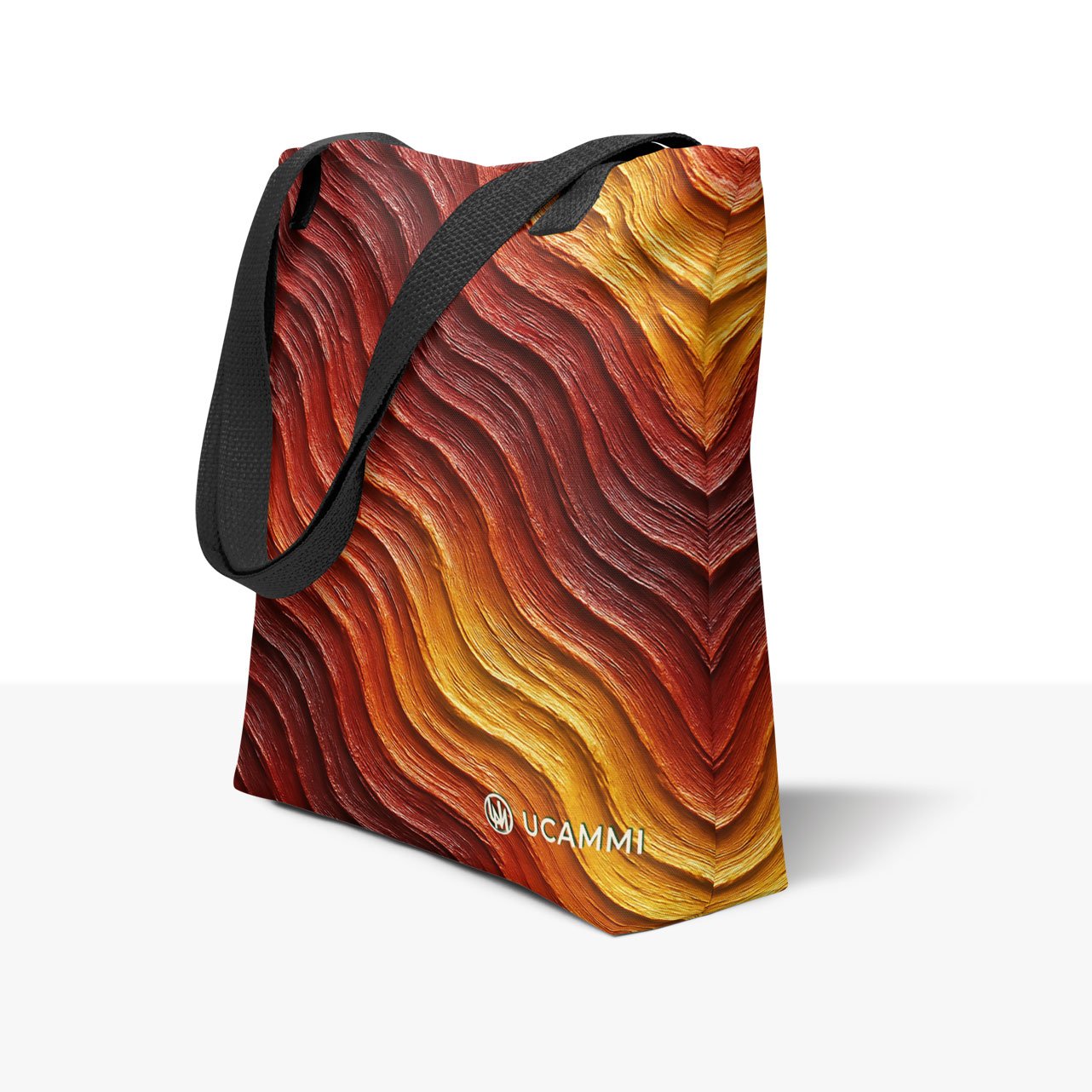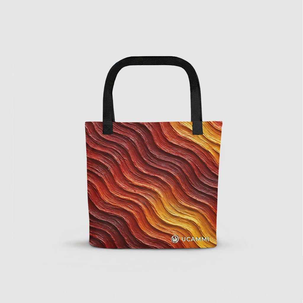 The Empowered Ember Canvas Tote flows with warm, textured waves in deep reds, fiery oranges, and golden tones. The movement in the design creates a sense of rising energy—bold yet controlled—symbolising inner strength and calm empowerment. The printed tote’s rich colours bring warmth and a grounded confidence into everyday life, expressed in a subtle and modern way.
