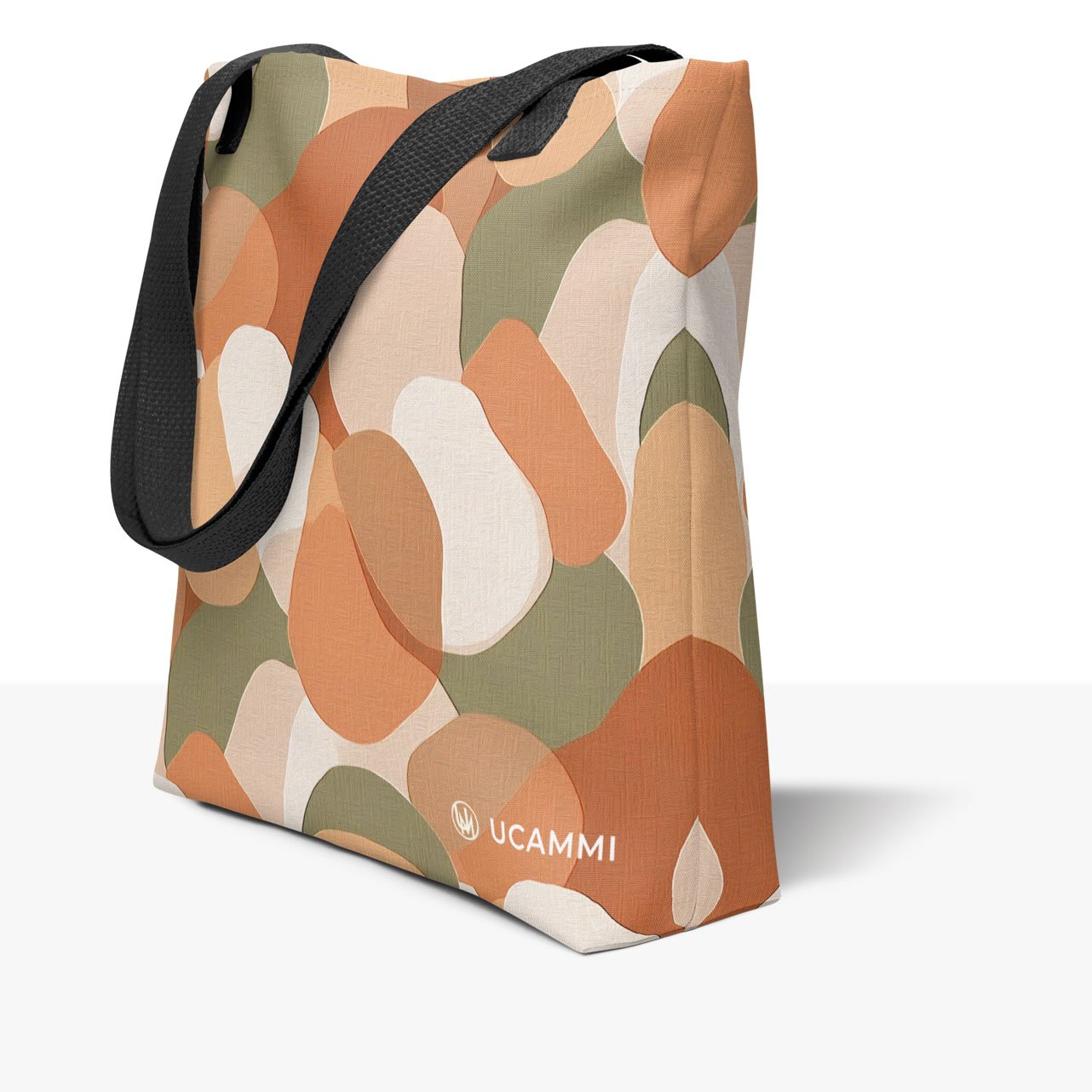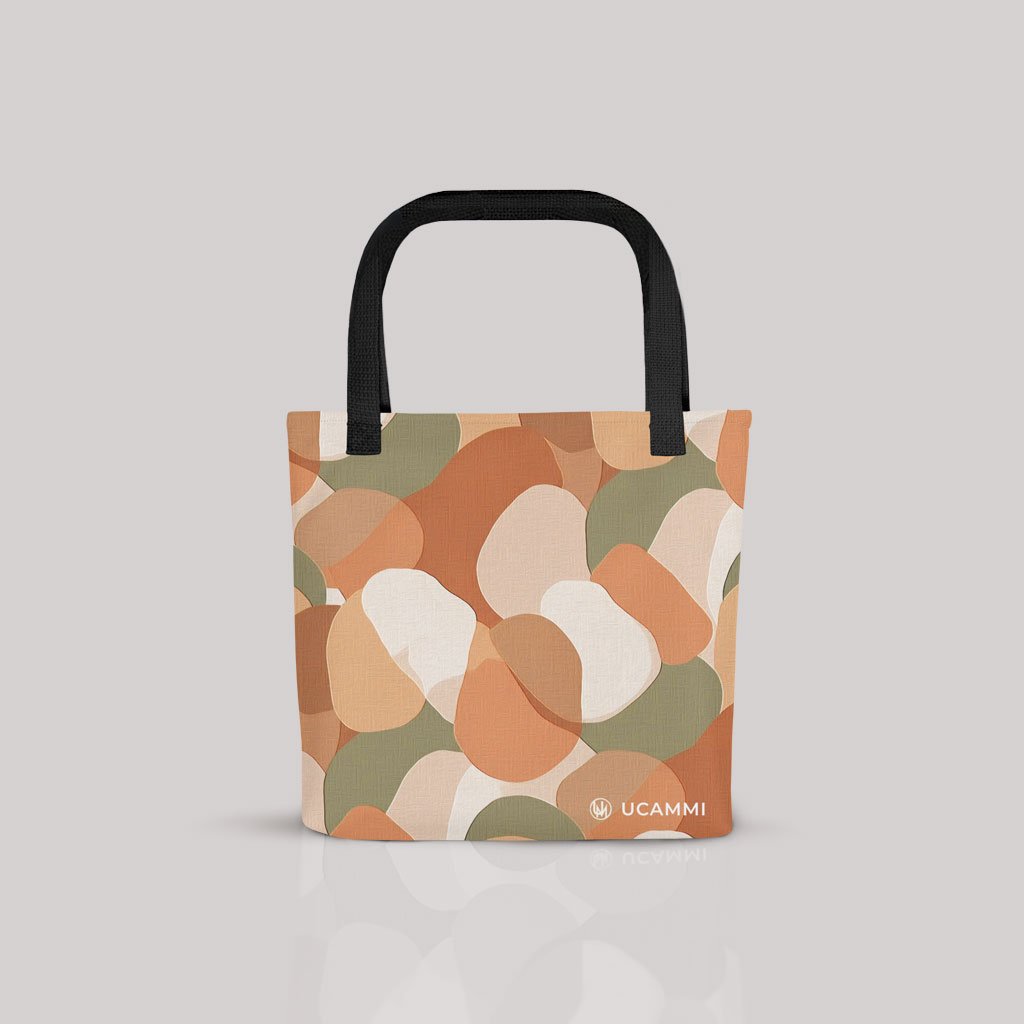 The Linea: Pebble Harmony Canvas Tote Bag brings together warm terracotta, olive green, cream, and soft clay tones in an organic pebble pattern designed to give your day a gentler, more grounded feeling.