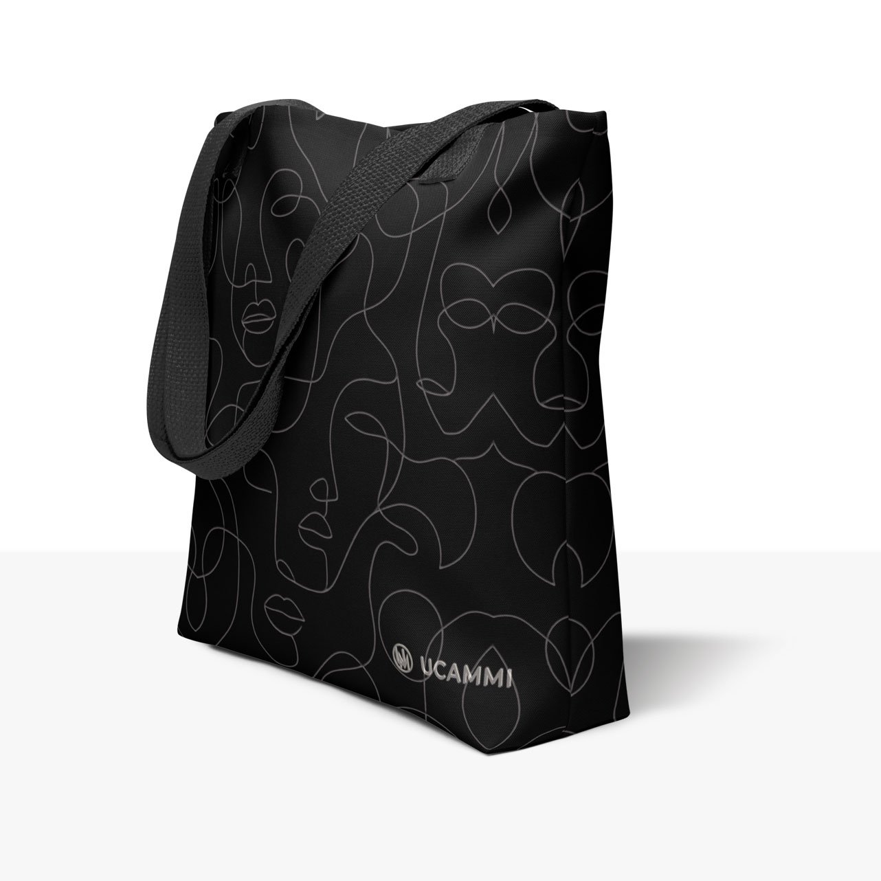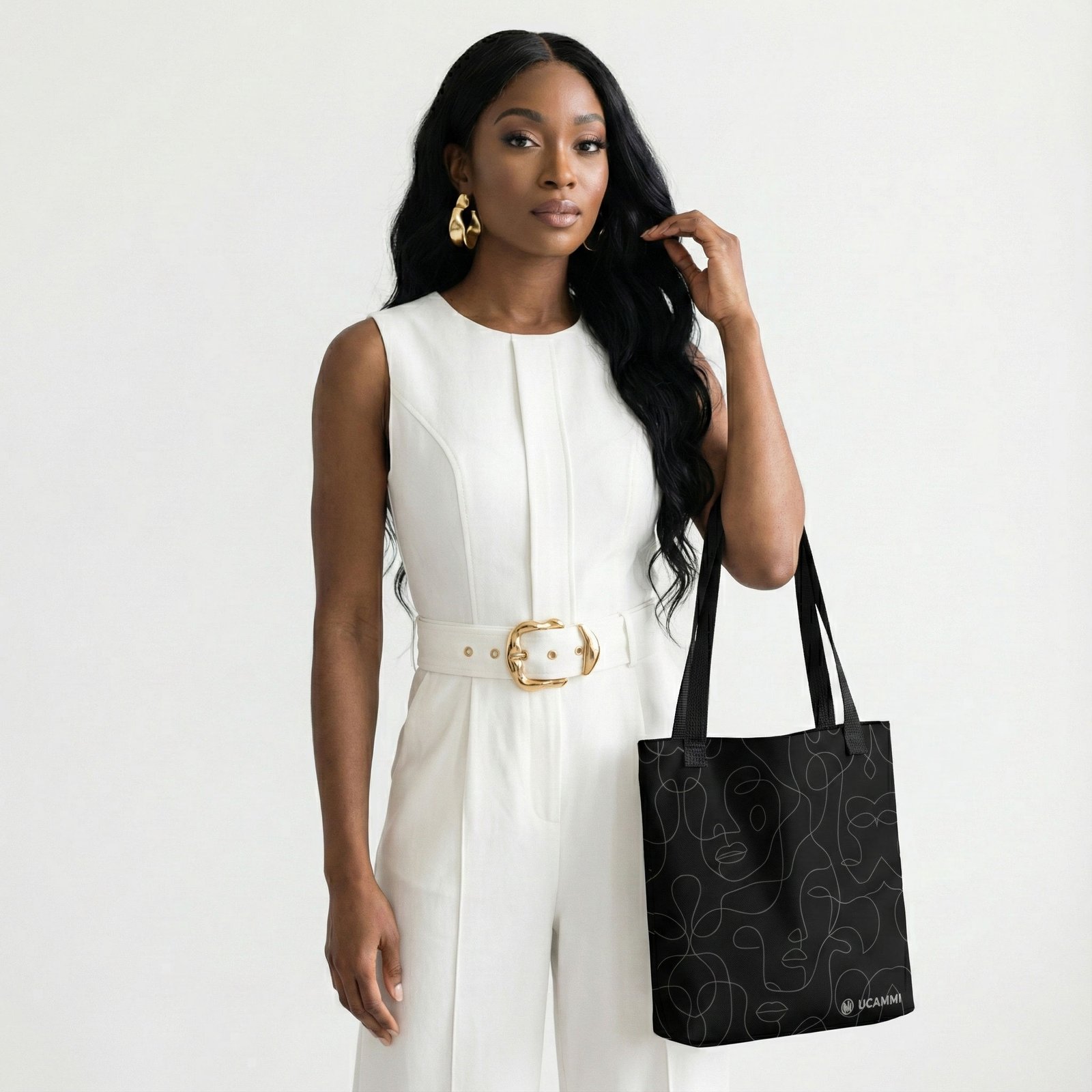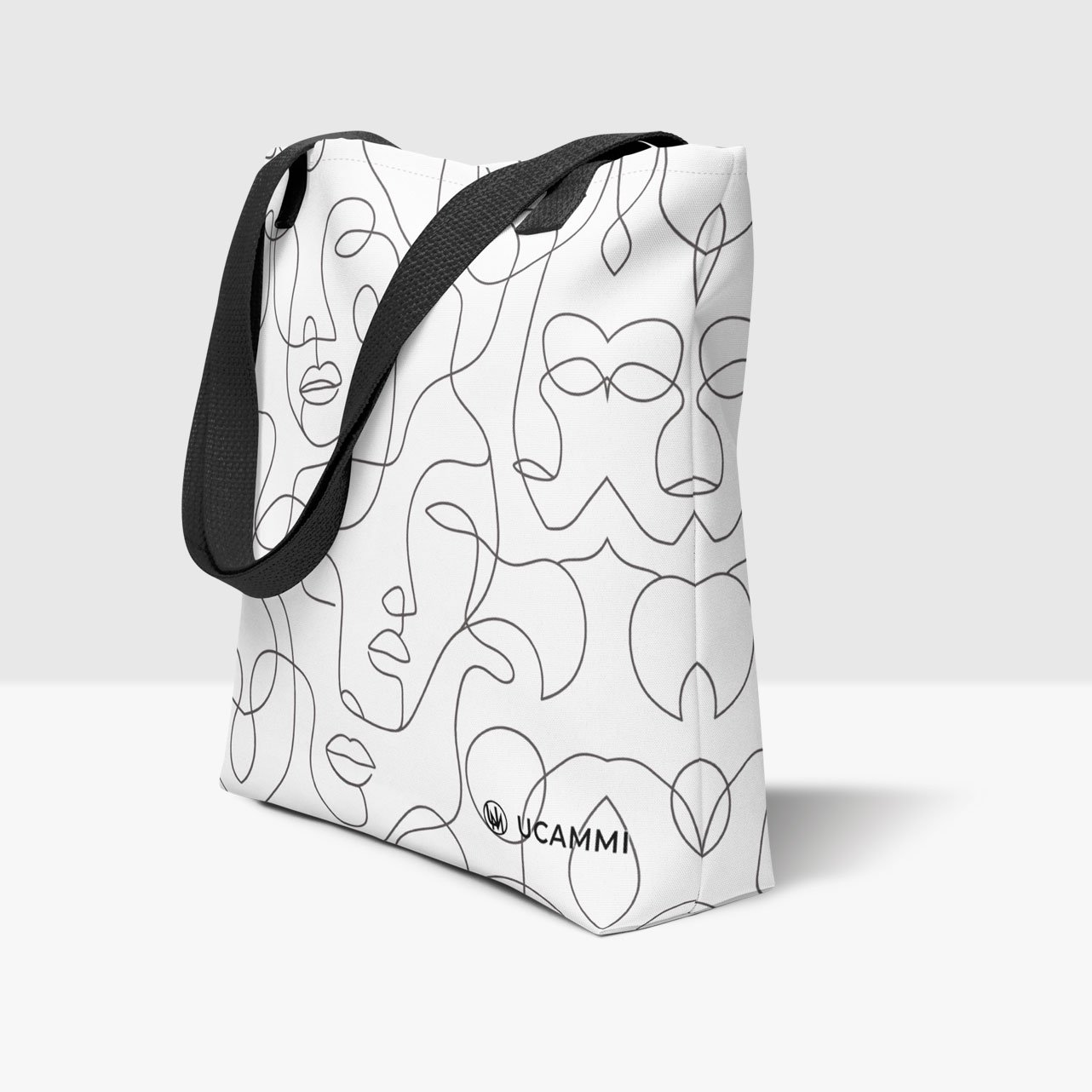 The double-sided print keeps the design looking clean and modern from every angle. Choose the white tote bag for a bright, open feel or the black tote bag for a deeper, more grounded look. Both styles work easily as everyday canvas totes, over-the-shoulder bags, or a simple travel carry.