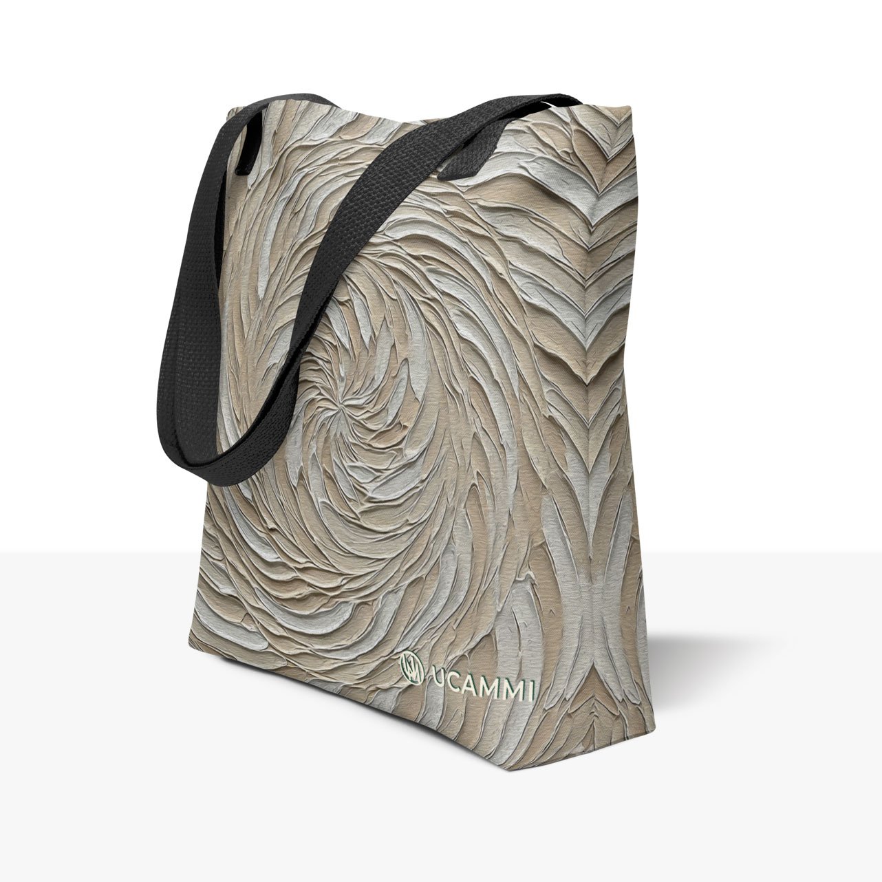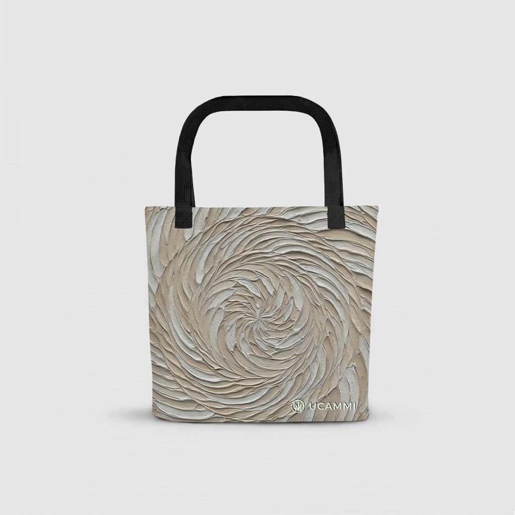 Designed to gently support a sense of patience and steadiness, this printed tote bag features soft beige and cream textured spirals that feel peaceful and slow — perfect for anyone wanting a quieter, more centred day.